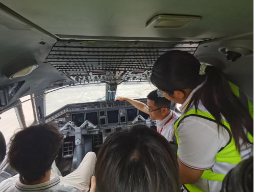实习期间,同学们参观了停机坪、航材库、调度室等场所,各模块的工作人员为同学们讲解民航飞机的维修过程,加深同学们对民航基础知识、规章制度、生产运行等的认识,让同学们对飞控系统、操纵系统、起落架系统、机轮系统、燃油系统等有了更全面的了解。在工作人员的讲解以及师生们与工作人员的互动中,师生们对飞机系统概况和维修体系的运行产生了浓厚的兴趣,对民航业有了直观的认知,为其日后的学习和工作夯实基础。