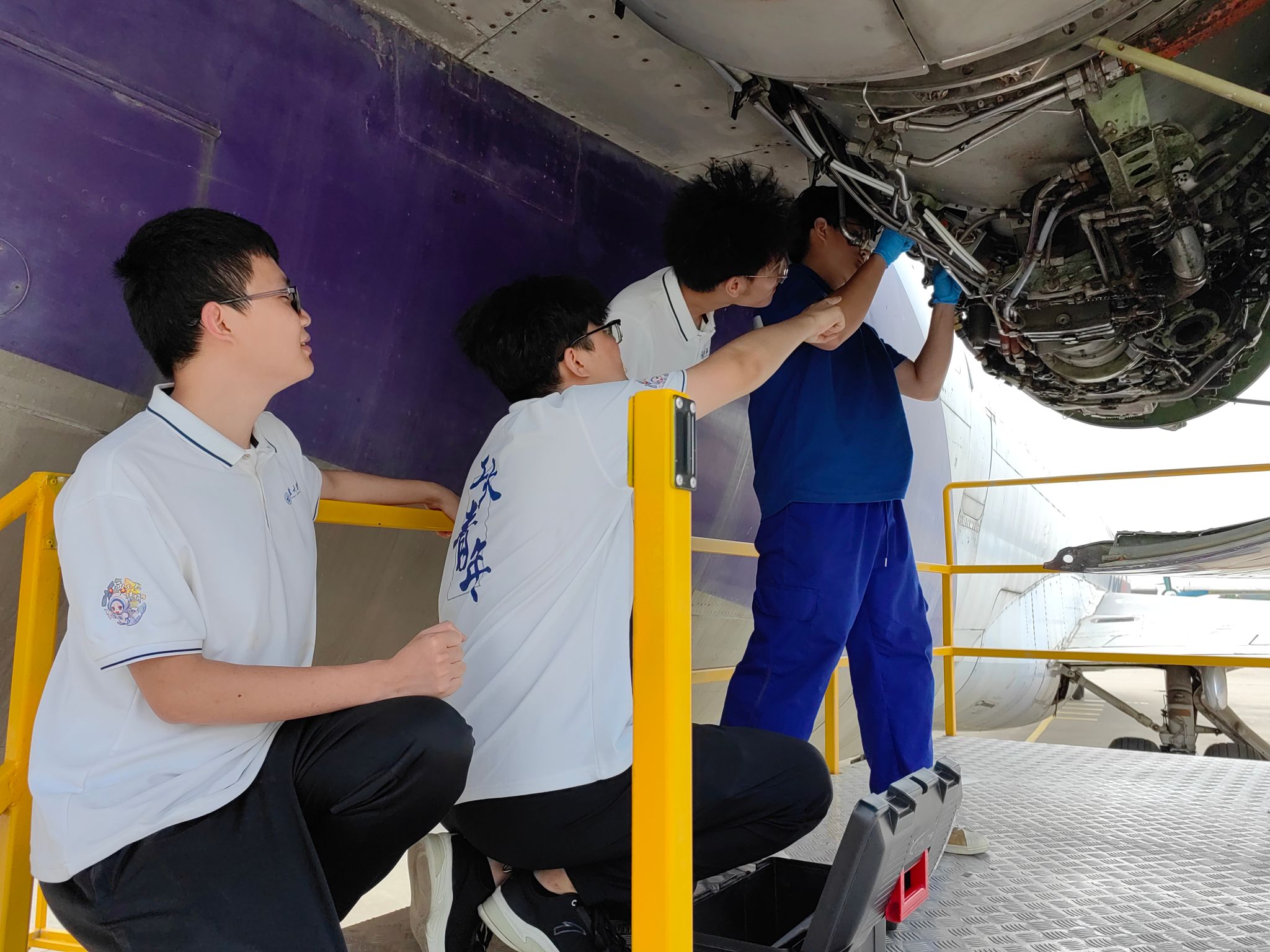 中国民航大学参访让同学们深切感高校在民航科教创新领域中发挥引领作用。停机坪上,螺旋桨与喷气机并立,古董与现代交织,每架飞机都是时间的见证,讲述着航空的过去与现在。工程实践训练中心的操作和维修基地的观摩学习,更是让理论知识在实践中生根发芽。