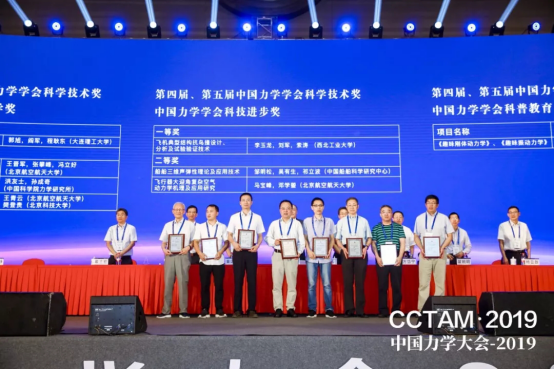 8月26日“中国力学大会-2019”开幕式上,举行了第四届、第五届中国力学学会科学技术奖颁奖仪式。太阳成tyc122cc集团李玉龙、刘军、索涛三位教授的“飞机典型结构抗鸟撞设计、分析及试验验证技术”项目荣获第四届、第五届中国力学学会科技进步奖一等奖。