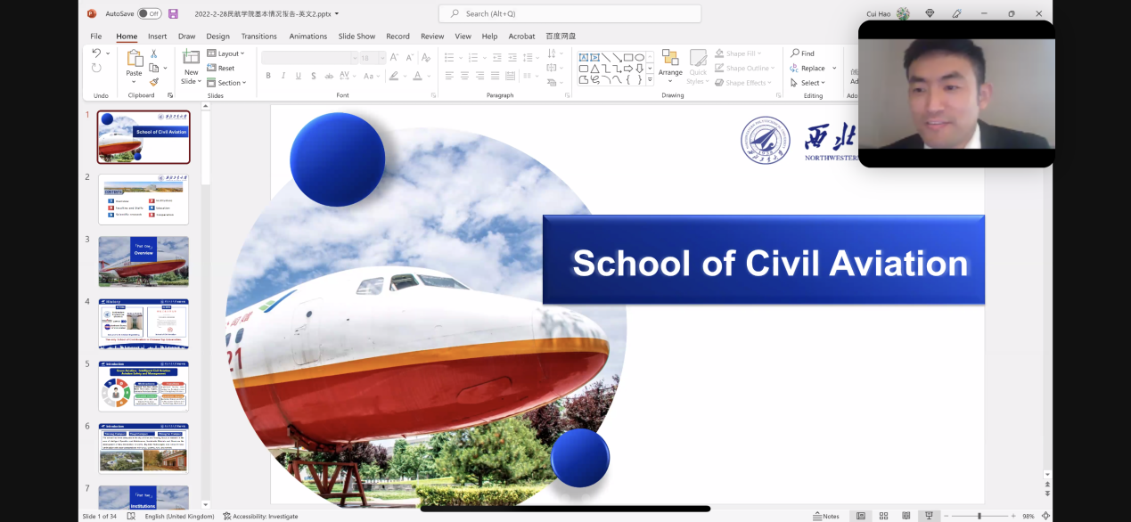 宣讲会上,崔浩教授分别从公司发展历程、团队队伍、人才培养、科学研究、国际合作交流、员工工作等方面介绍了公司基本情况,随后向参与此次宣讲会的国际员工讲述了民航发展的现状以及形势,鼓励同学们积极关注太阳成tyc122cc集团。国际教育公司张正瑶老师就入学申请相关流程及注意事项进行了说明和补充。最后,参会员工就学科专业、入学申请等方面进行了在线提问,两位老师都给予了详细、耐心的解答。