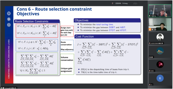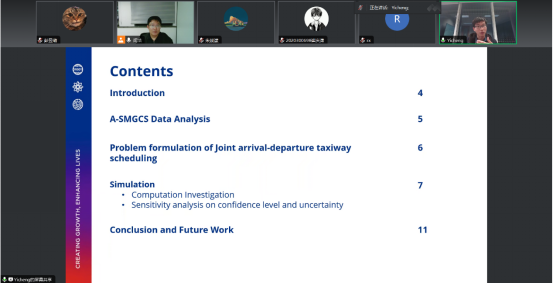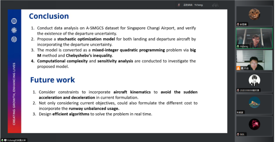 11月17日晚,来自新加坡科技研究所(A*STAR)的高级研究员(Senior Scientist)张逸成博士应公司副教授闫浩的邀请,为民航国际讲坛作题为“考虑起飞不确定性的机场滑行道联合调度问题研究”线上讲座,公司多名师生参加了此次讲座,讲座由闫浩主持。