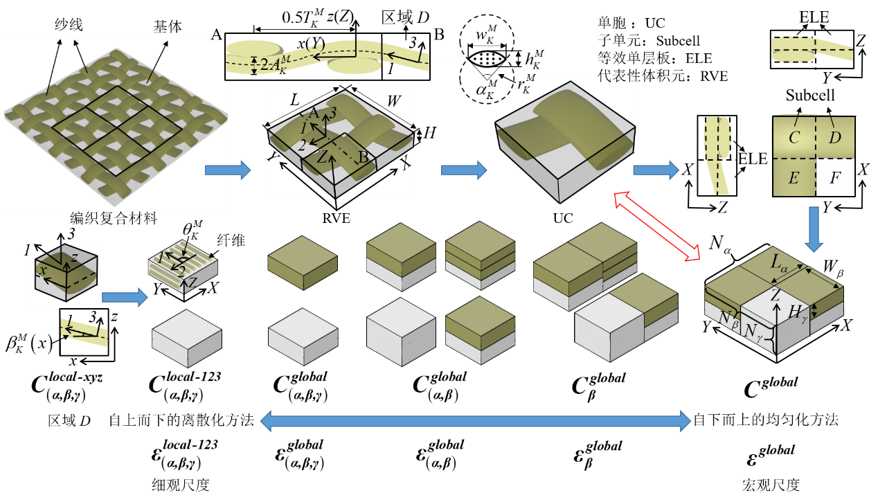 为了充分发挥纺织复合材料在工程结构上的优势,有必要在设计阶段快速获得材料的力学性能。然而,纺织复合材料种类繁多、几何构型复杂多样,通过试验测量和数值仿真进行材料筛选时间周期长,且需要耗费大量的人力和物力资源。现有的成熟理论方法能较为有效地预测纺织复合材料的刚度性能,但是难以应用于强度性能和渐进失效行为预测。此外,基于多尺度理论体系的精确求解方法(例如,General Method of Cells),虽能实现纺织复合材料强度的高精度预测,但存在计算效率低、迭代收敛难等问题,限制了其实际工程应用。因此,发展兼具准确性、高效性和通用性的理论模型来预测纺织复合材料的强度性能和渐进损伤过程仍是一个亟待解决的问题。
