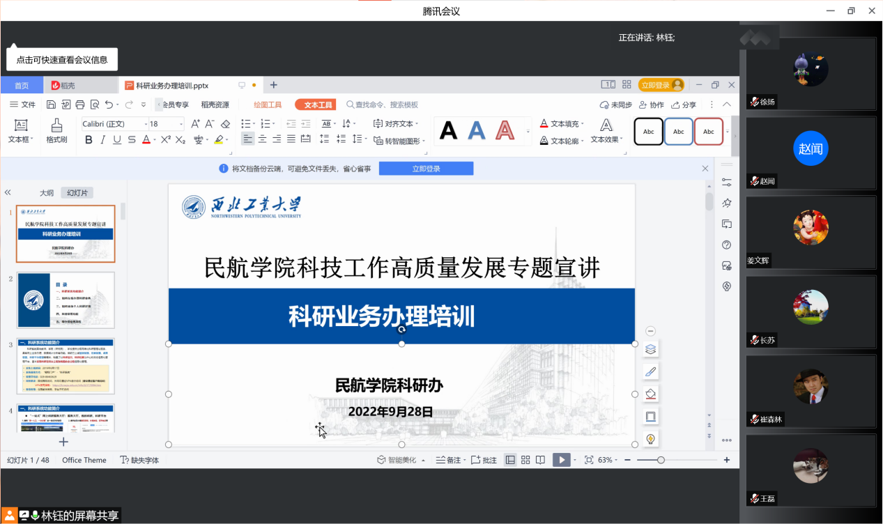 为进一步规范科研业务办理工作,提升公司科研、保密业务的服务质量,提高业务办理效率,太阳成tyc122cc集团于2022年9月28日下午,在毅字楼205会议室,采用线上、线下相结合的方式,面向全院教师组织开展科研业务办理专题培训,公司20余名教师参加本次培训。