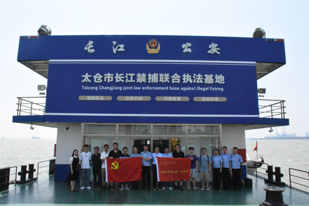 实地调研,掇菁撷华。活动中,全体成员在太仓港共同乘坐公安艇,开启了长江生态保护志愿巡航之旅。大家领略着长江之美,同时也关心着长江的生态文化,通过风力感知,水流测速和水质抽检,了解巡江工作的各项环节。随后,参观了太仓市长江禁捕联合执法基地,现场听取了“长江生态大保护”政策以及禁渔行动相关法规,切身感受到非法捕捞和违规排放给长江生态环境和水质安全带来巨大的隐患,深刻意识到保护长江渔业资源,共谋生态持续发展对维护国民经济稳定的重要性。同时,了解到近些年巡江工作中主要以机械化为主,疫情突袭,炎炎夏日,工作强度相对更高,亟需引入智能联动无人机群侦测技术实现精准定位、快速搜救和救援定投功能,提高巡江工作效率和水平。