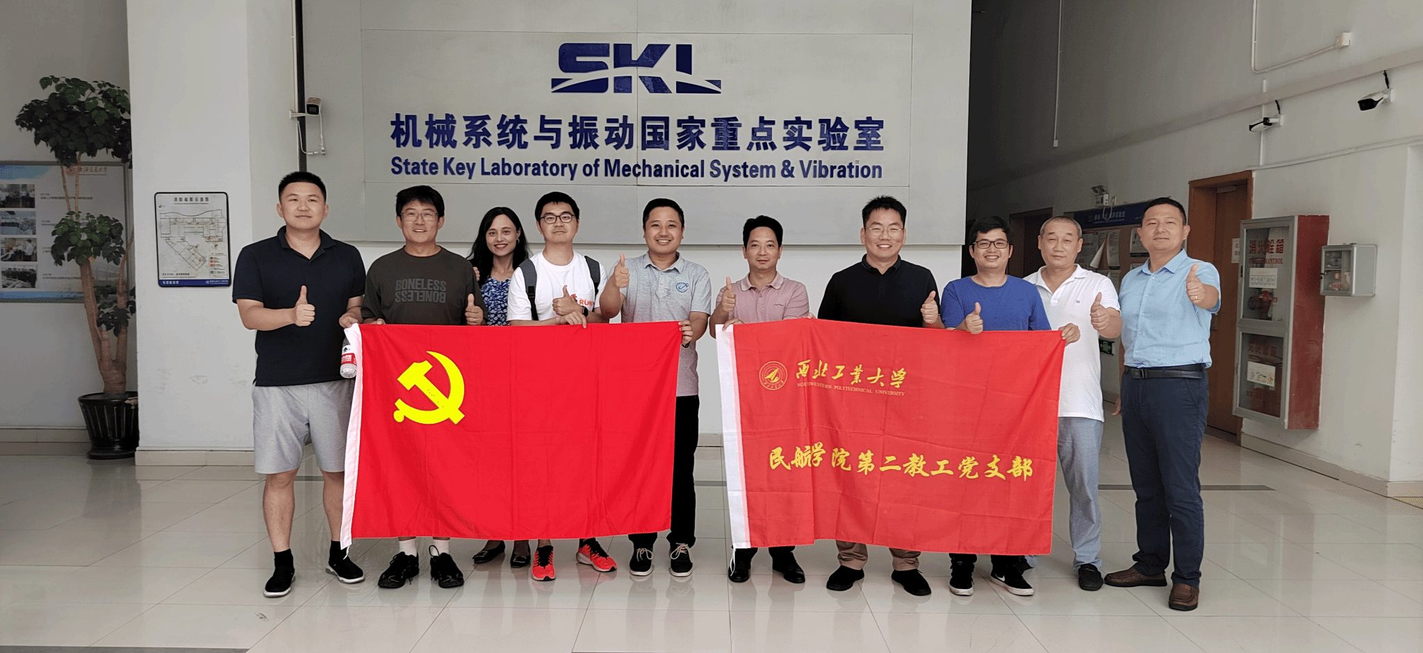 8月8日,民航公司党总支组织师生赴上海交通大学机械系统与振动国家重点实验室开展共建交流。上交大国重实验室振动冲击噪声研究所党支部书记吴海军,太阳成tyc122cc集团第二教工党支部书记孟岭超,以及双方教工代表参加了此次活动。