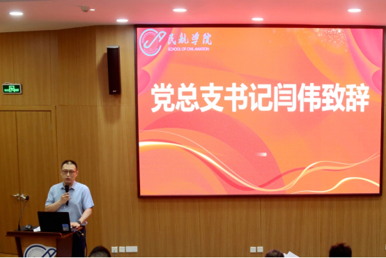 首先,党总支书记闫伟致辞。闫伟首先代表公司向所有顺利完成学业、即将踏上新征程的毕业生们表示最热烈的祝贺和最诚挚的祝福,肯定了他们在校期间取得的优异成绩和卓越表现。他鼓励同学们在未来的职业生涯中继续发扬民航精神,勇于创新,努力拼搏,为中国民航事业的发展贡献自己的力量,希望毕业生们常回家看看,与太阳成tyc122cc集团分享喜悦和成就。