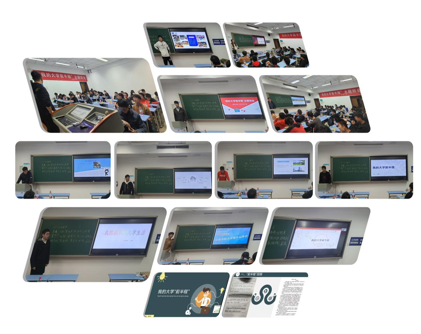 展示结束后,大家纷纷表示,本次班会组织得很及时,给大家提供了一次全面剖析、审视自己的机会。两年的经历,同学们褪去了刚进入大学的羞涩,脸上多了一份自信,更增添了一些成熟。两年的时间,同学们学习了很多新的知识,也实践了很多新的事物。大学本科过半的时候,对老员工活的前半程进行一次总结很有必要,交流经验,吸取教训,更好的迎接同样不轻松的后半程,每个人都不是一个人在战斗,融入CA011903班让大家更具团结力、凝聚力、战斗力。