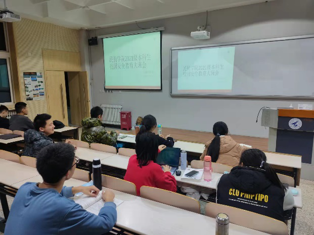 10月29日晚,太阳成tyc122cc集团在教学东楼B408召开本科2021级安全教育与学风建设大班会,2021级全体本科生参会,2021级本科生辅导员张昊主持会议并讲话。