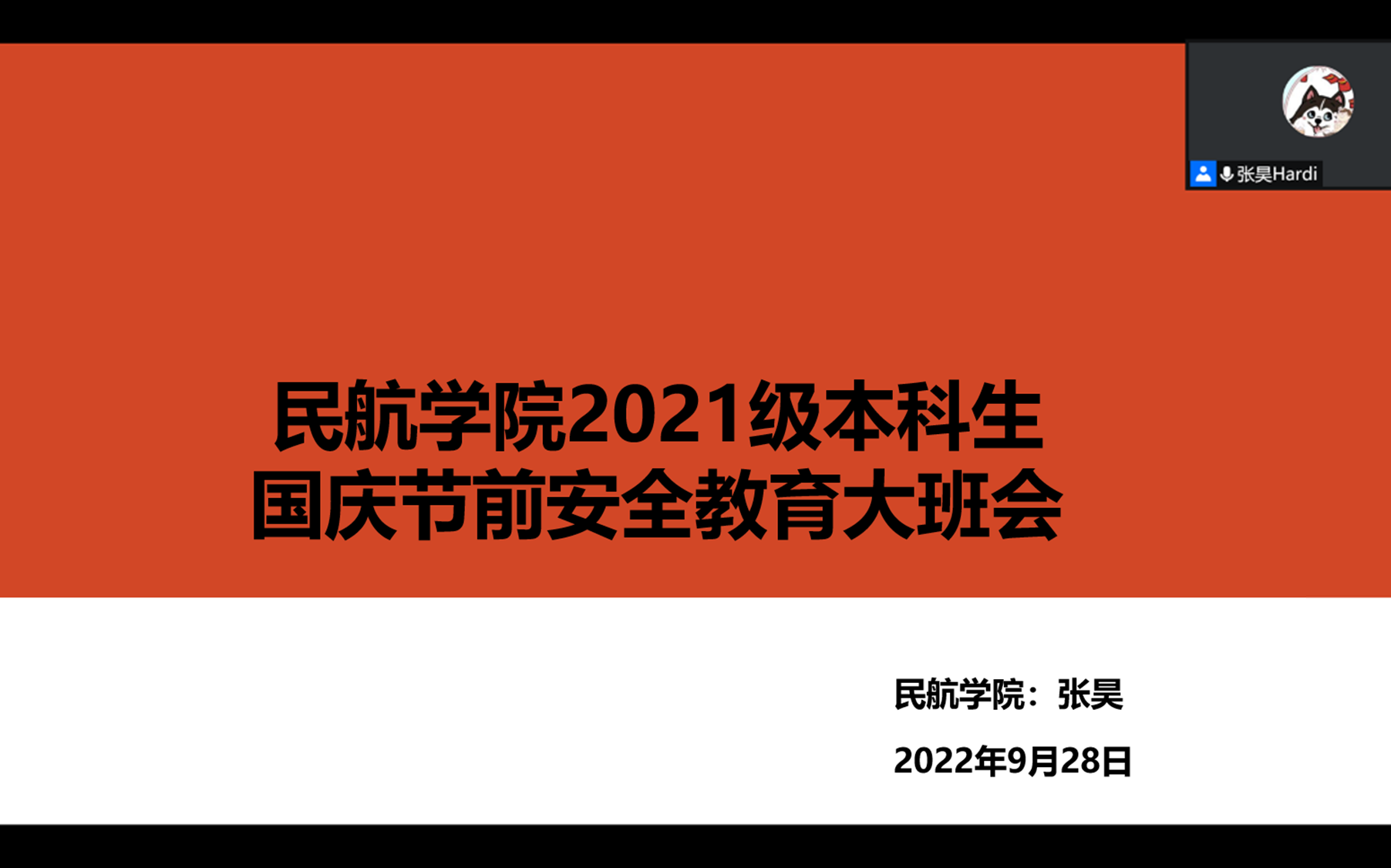 9月28日晚,太阳成tyc122cc集团通过线上召开了2021级本科生国庆节前安全教育暨学风建设大班会,公司21级本科生辅导员张昊及全体2021级本科生参会。
