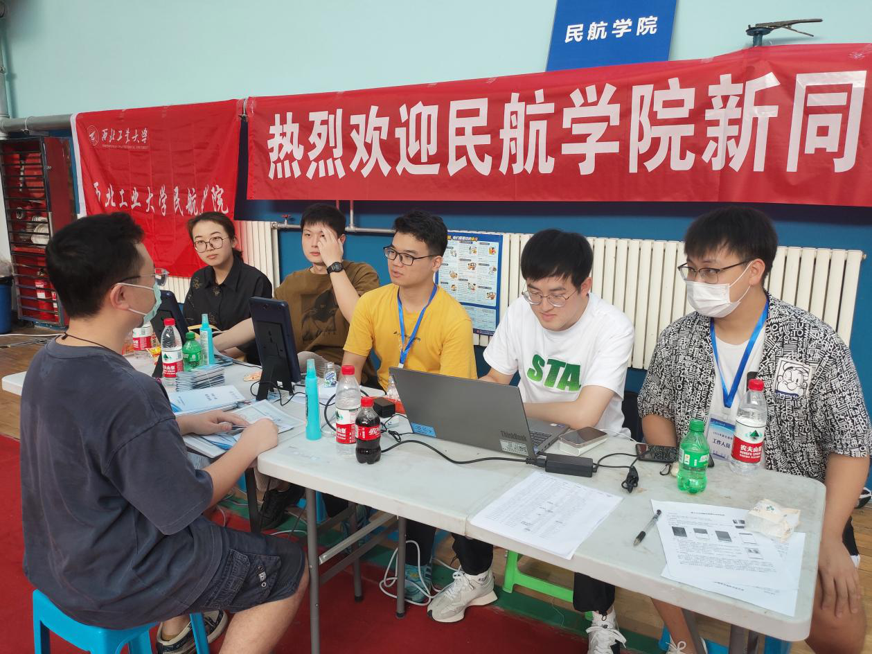 本次迎新地点位于友谊校区翱翔训练馆,在辅导员孟岭超老师的带领下,采取“2+1轮班”制度,在不同时段由三名高年级志愿者在现场进行迎新报道工作,并为同学们提供照片采集、一卡通办理与绑定、翱翔门户系统操作指导等服务。