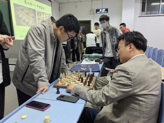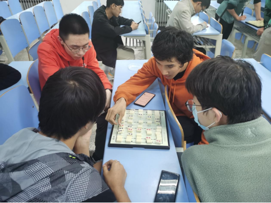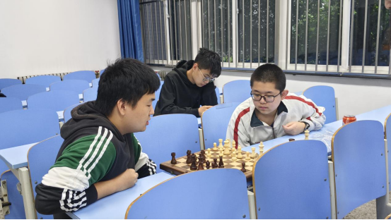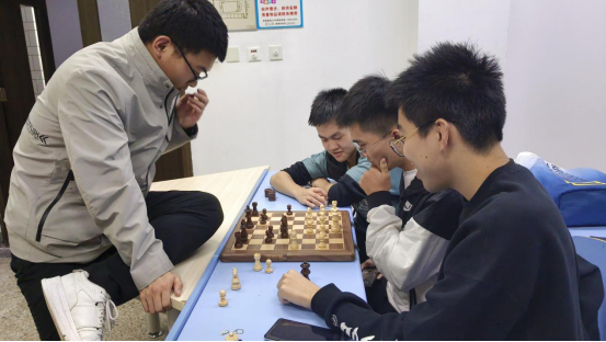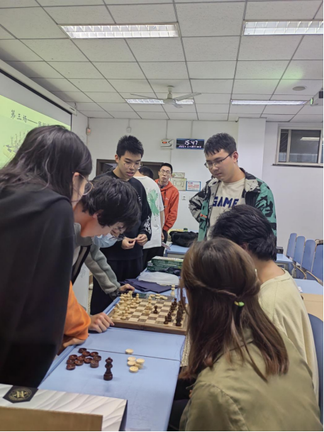下午两点,棋类对抗赛准时开始,共八支队伍,其中六支队伍两两对决,其余两队充当裁判,三场比赛裁判轮换,并且采取三局两胜制,保证了赛事的公平性。刚开始的军棋比赛,同学们就展现出了极高的热情和兴趣,对战双方你来我往,战况十分焦灼。三点到四点进行了中国象棋比赛,这无疑是最为流行的棋种。刚开场,气氛就达到了高潮,比赛也进入了白热化阶段。和一开始放松状态不同,同学们表情更为严肃,每一步棋都要思索良久,一招一式中似乎都蕴藏着陷阱和“杀机”。四点开始的国际象棋,虽然没有中国象棋那么流行,但依然受到了同学们的热爱,棋局中也是以最高的热情和最好的精气神来进行对弈。五点到六点混战开始,还未进行比赛的队伍之间进行对弈,同样的激烈,同样的精彩绝伦。