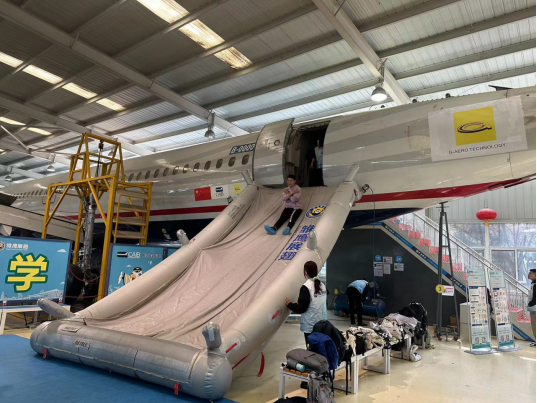 通过开展舱门充气滑梯撤离演练,同学们对民航飞行安全有了新的认识,强化了对安全规章的重视和敬畏。