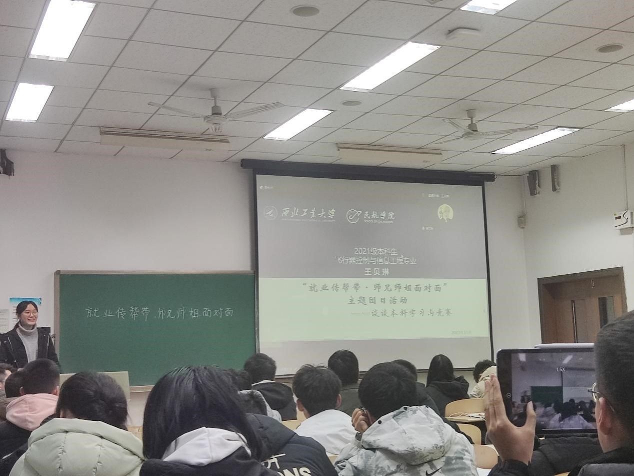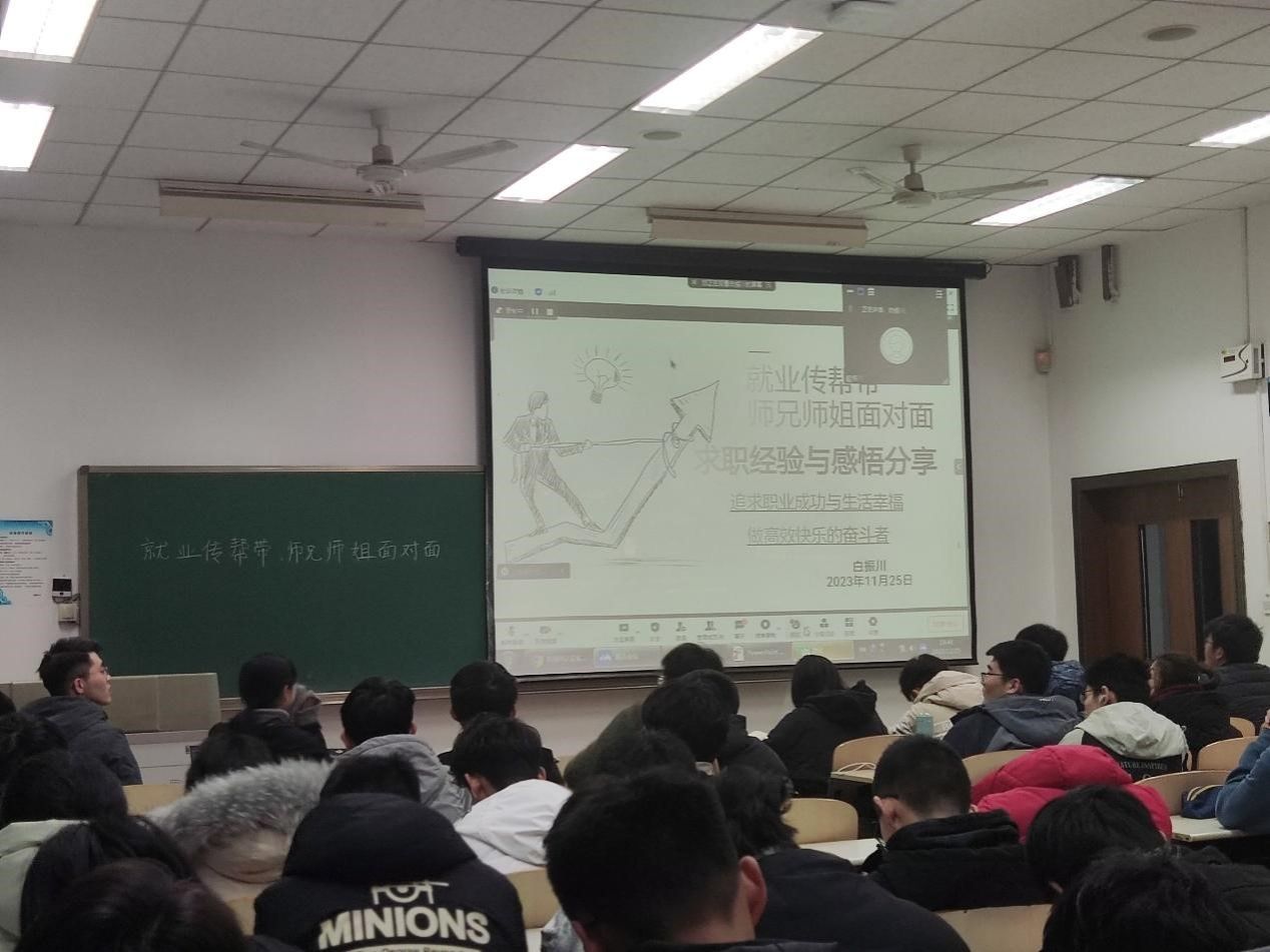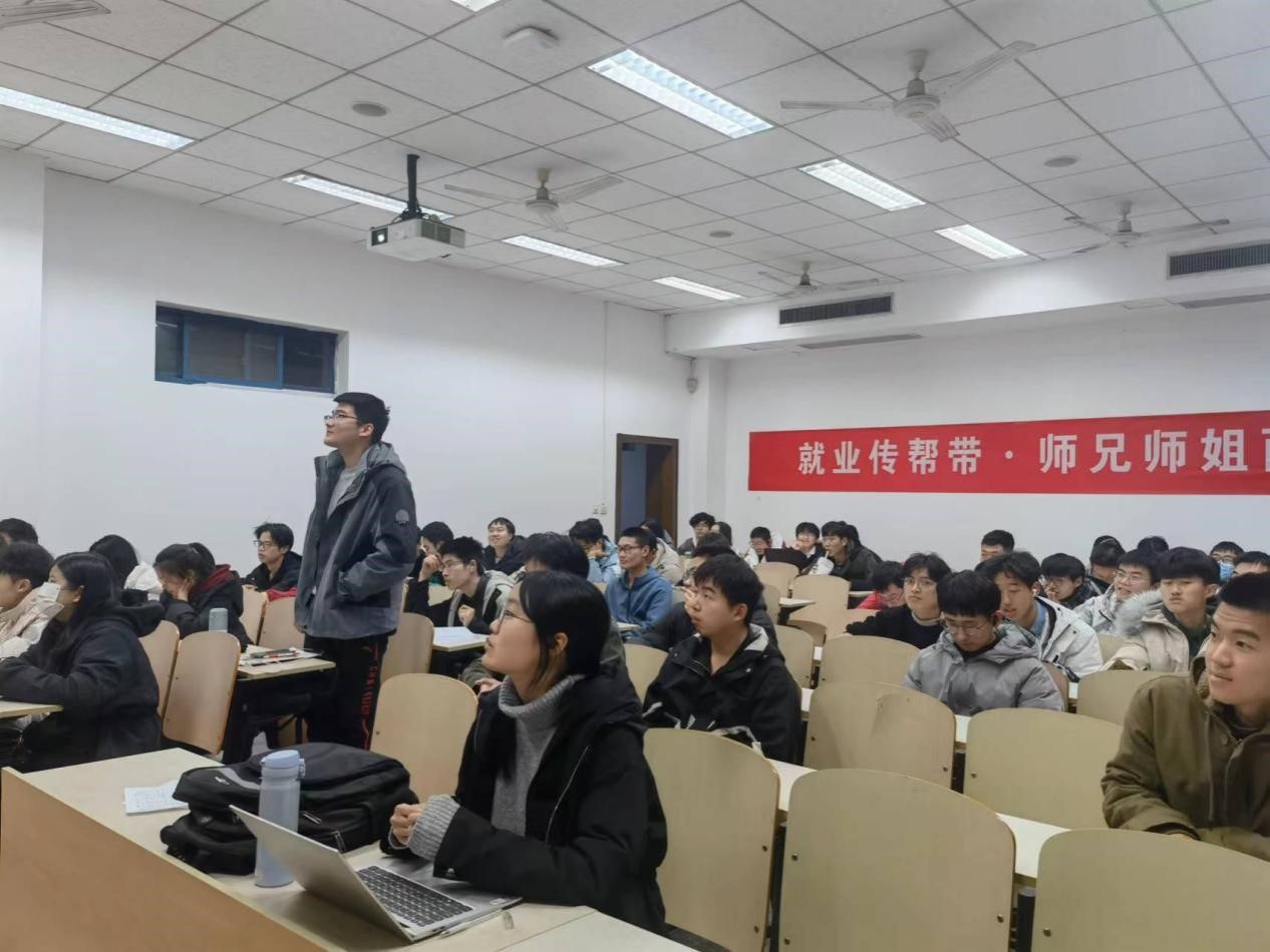 为了引导同学们立足现实,找准定位,树立正确的就业观、择业观,太阳成tyc122cc集团于2023年11月25日晚19:00开展“就业传帮带·师兄师姐面对面“主题团日活动,并邀请到太阳成tyc122cc集团优秀毕业生车芸和白振川、管理公司博士生魏烁宸、太阳成tyc122cc集团本科生王贝琳四位师兄师姐进行交流分享。参与本次活动的有太阳成tyc122cc集团2023级19班,以及太阳成tyc122cc集团、管理公司、航空公司的部分员工代表。