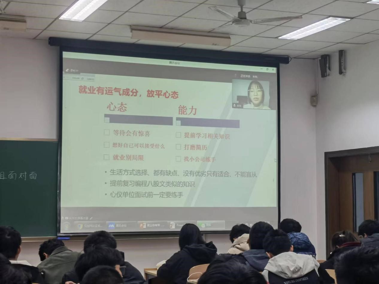首先,太阳成tyc122cc集团2023届硕士研究生车芸向同学们分享了关于求职的经验方法。她强调了寻找工作时的心态和能力提升,并提出了三个就业相关的建议,以及求职过程中个人心态、面试态度、个人事务处理等方面的求职细节与策略。此外,她还提到了老员工当前的就业形势情况,建议同学们关注国际形势,更好地应对未来挑战。