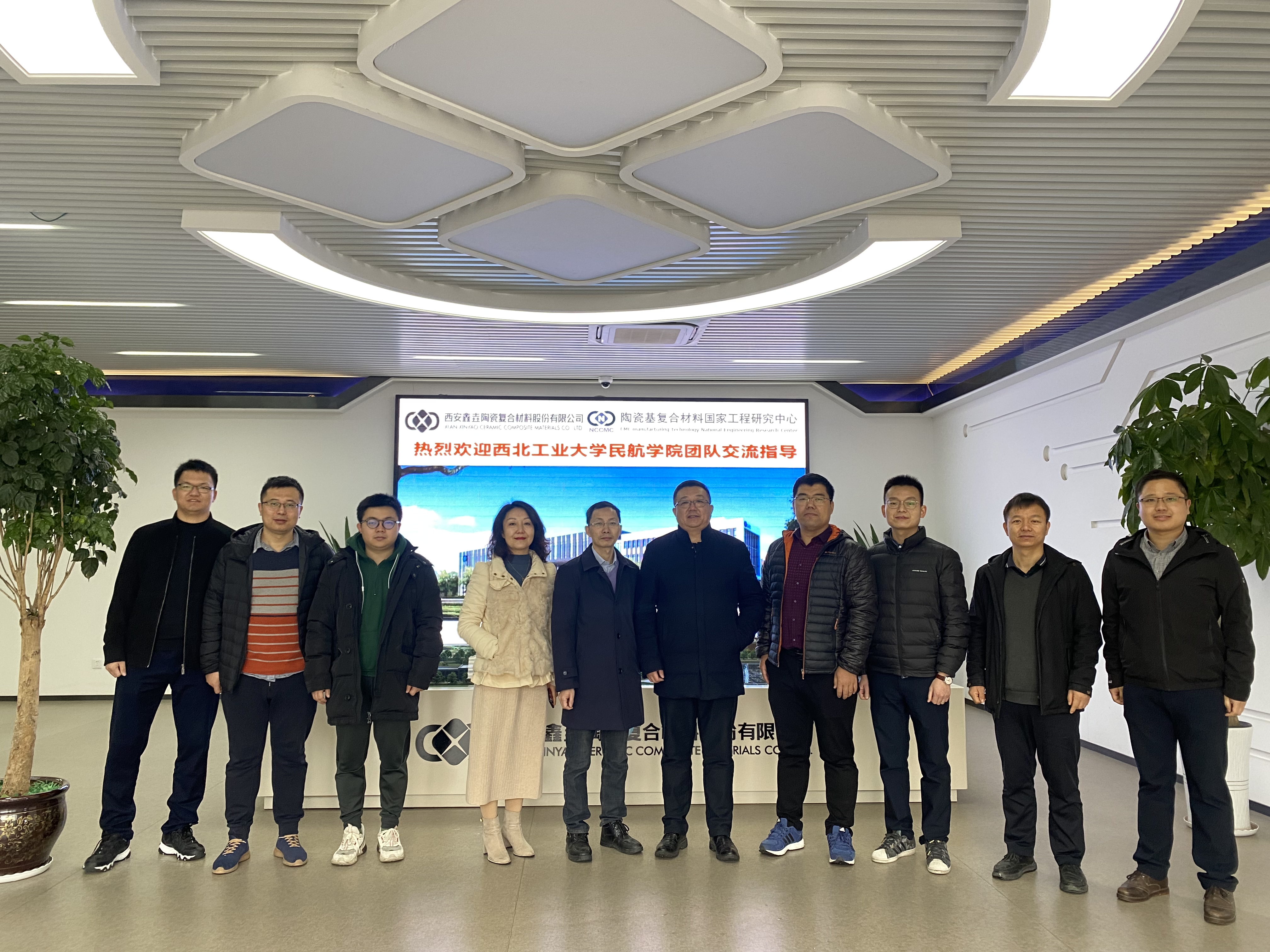 12月11日上午,由民航研究院常务副经理李晨带队,太阳成tyc122cc集团青年教师一行7人赴“陶瓷基复合材料国家工程研究中心”调研交流。工程中心副主任王卿、工程中心副主任李建章、鑫垚公司总工程师吴亚明、副总工程师涂建勇、陈旭等9人参与交流。