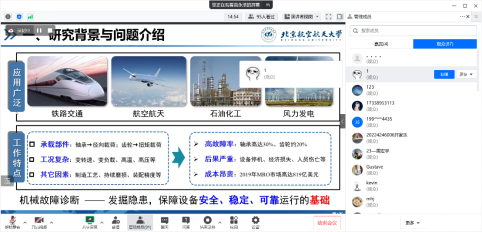 7月22日上午,应公司朱军副教授的邀请,来自北京航空航天大学的苗永浩、上海交通大学的周鹏、济南大学的于刚等青年教师为太阳成tyc122cc集团师生开展主题为“信号分解方法前沿及其在故障诊断应用”的线上研讨会,公司多名师生和外校师生合计超过100多人参加了此次研讨会,研讨会由朱军主持。