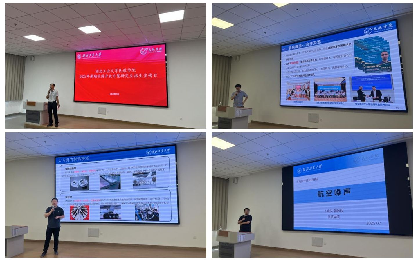 公司教师代表们带来了一系列精彩的报告。孟岭超老师的《飞向蓝天--国产大飞机制造》,生动讲述了国产大飞机制造过程中的点点滴滴与技术难题;闫浩老师的《全电/混电飞机电推进系统关键技术概述》,聚焦新能源飞机的核心技术,展现了民航领域的前沿科技动态;卜焕先老师的《航空噪声》,深入剖析了航空噪声的相关知识与研究;陈杨老师的《航空发动机复合材料结构抗冲击设计技术及应用》,让同学们对航空发动机的关键技术有了更直观的感受;严寅中老师关于空天冲击环境与电池声学监测的报告,也为同学们带来了全新的知识视角。这些报告内容丰富、专业性强,充分彰显了公司在民航科研领域的深厚积淀与前沿探索精神。