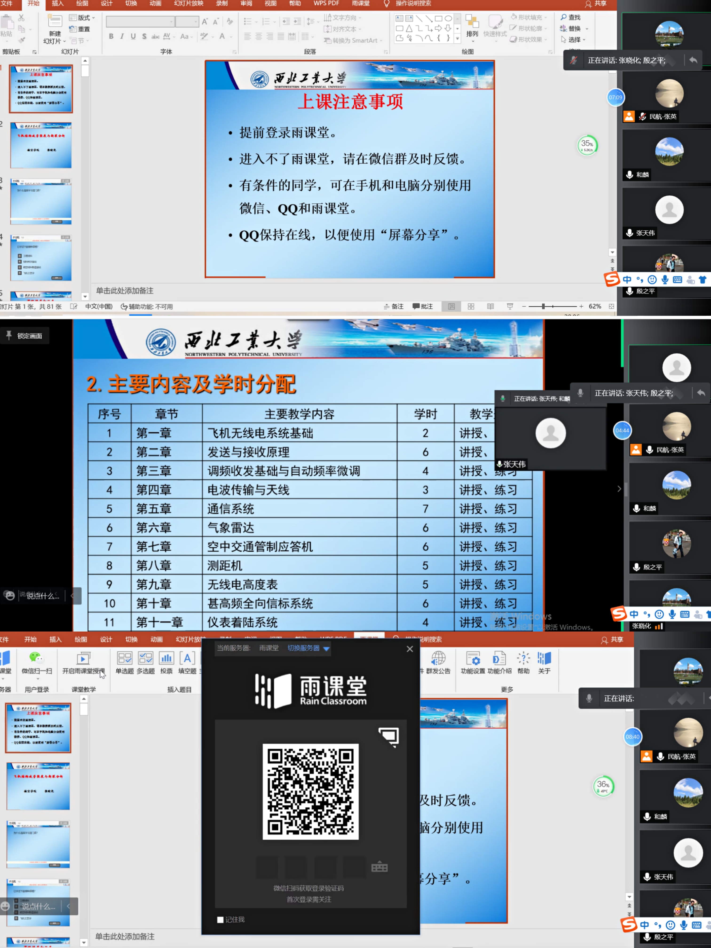 会上,各位有教学任务的教师,经过2021年12月28日召开的公司教学运行会议的通知,已经有了初步的准备,每位老师按照顺序介绍了各自课前准备情况以及在线演示课件使用情况,保证了在线教学过程中软硬件工具运行畅通、视频音频播放清晰度的问题。
